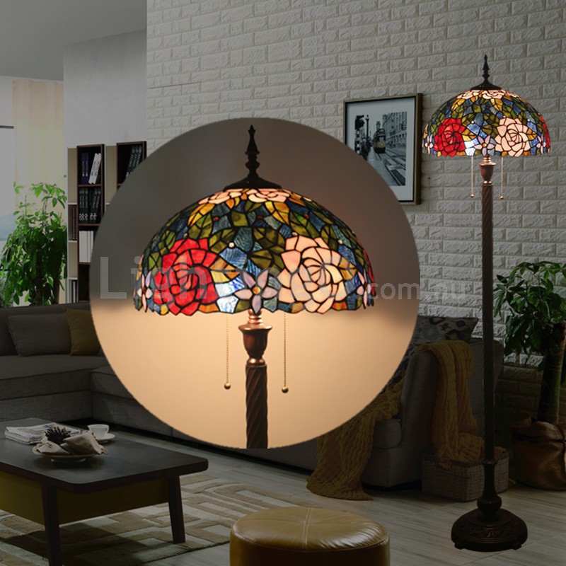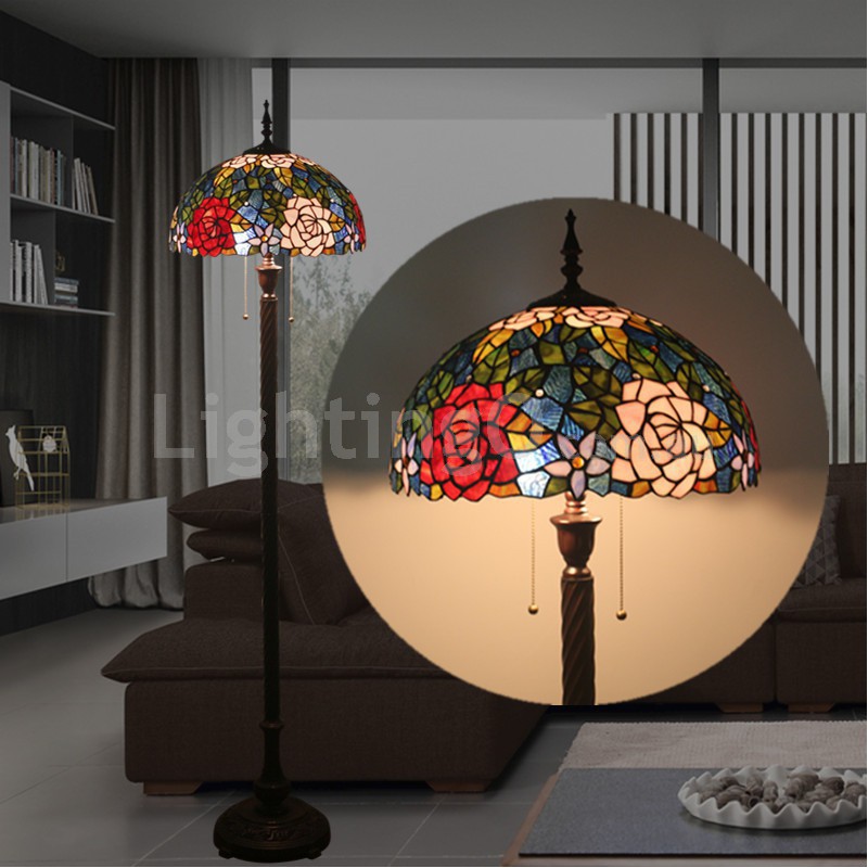 16 Inch European Stained Glass Rose Style Floor Lamp
